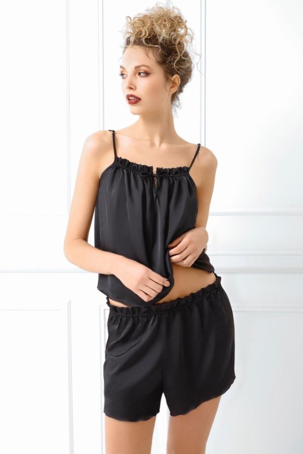 Short con elástico en la cintura y terminación fruncida a juego con el top